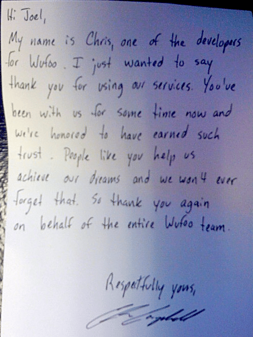 Be your own customer service. Online form builder Wufoo would send new users a handwritten thank you note. This didn't scale, but it created intense loyalty.